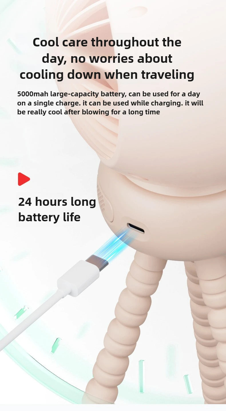 - Portable and Versatile: Great for use in strollers, cribs, or as a table fan with its flexible stand and 360° rotation.