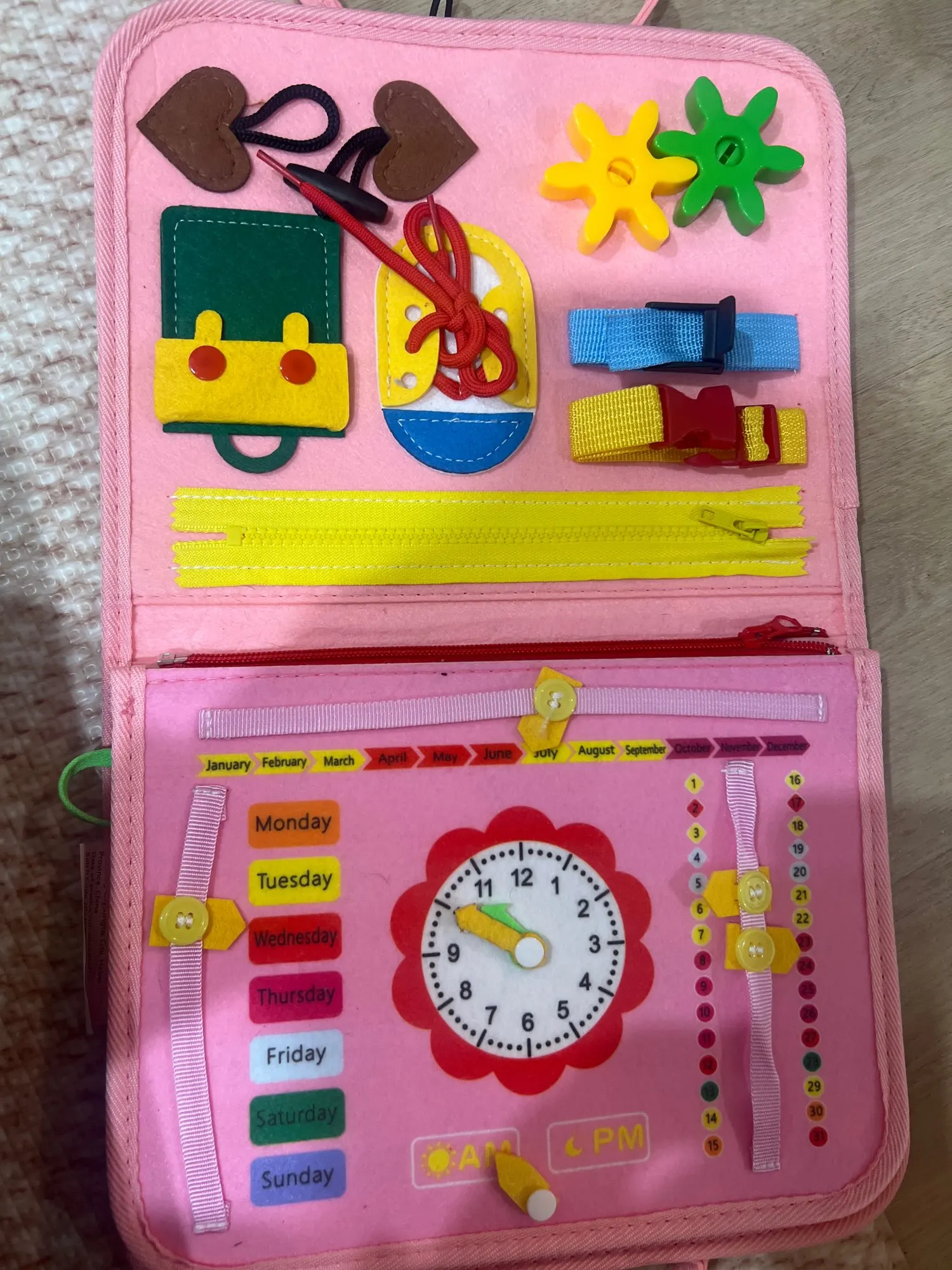 - Educational & Fun: Helps toddlers develop motor skills, hand-eye coordination, and sensory abilities through interactive activities such as zippers, buttons, and laces.